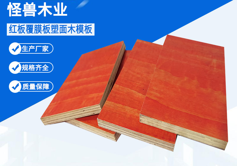 怪獸木業生產的桉木小紅建筑模板建筑模板采用的松木、桉木、雜木等全整芯板芯板,每層板芯,層層過膠,經冷壓熱壓,二次成型,壓制而成,板材鋸開后中間無空洞,表面涂層為防水性能的酚醛樹脂膠耐用高次數。